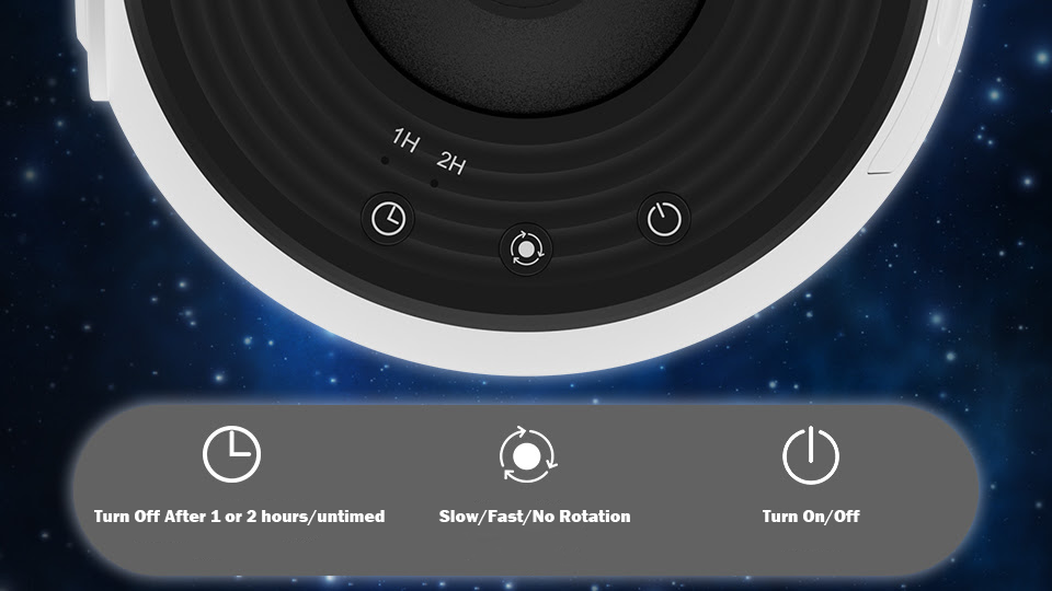 The Galaxy Projector Can Be Set to Turn Off Automatically After One or Two Hours, Helping You Save Money on Electricity and Avoid Being Disturbed by Lights While Sleeping.
